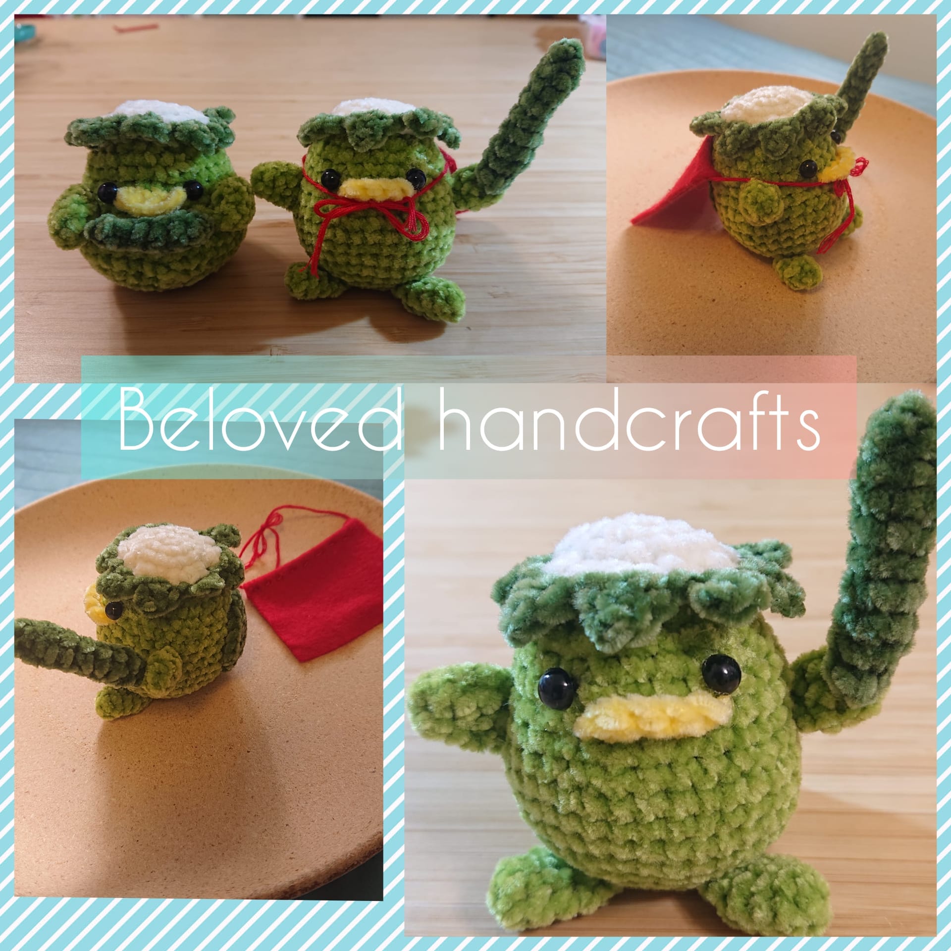 These crochet little Japanese Kappa 🥒 were handmade by me with love. They can be made to order.